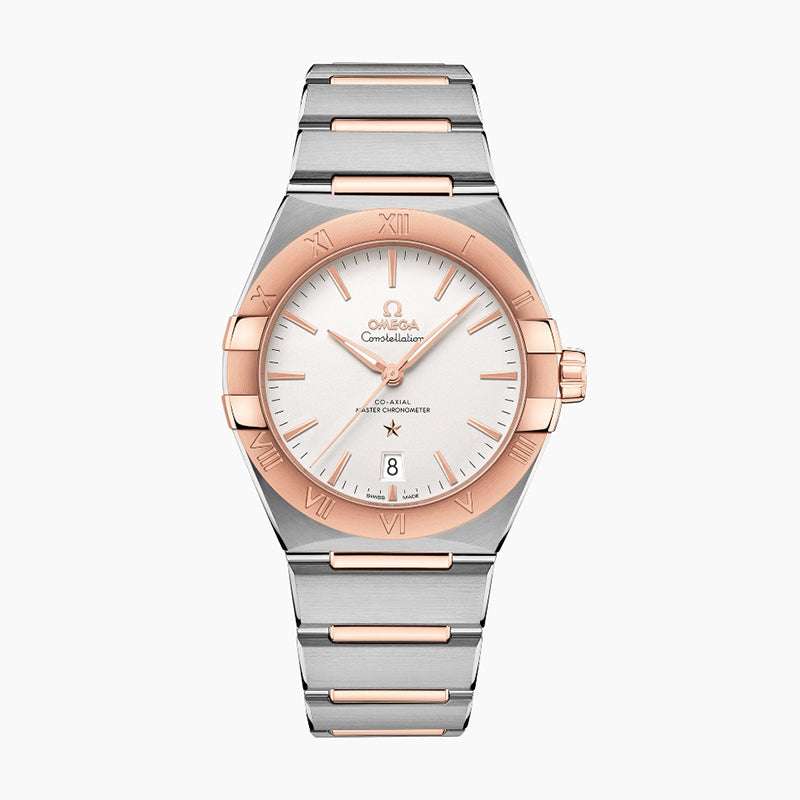 OMEGA CONSTELLATION 39 MM, スティール ‑ セドナゴールド レザーストラップ 131.23.39.20.02.001