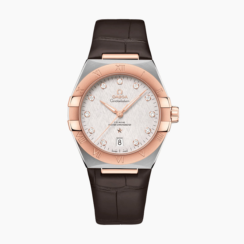 OMEGA CONSTELLATION 39 MM, スティール ‑ セドナゴールド レザーストラップ 131.23.39.20.52.001