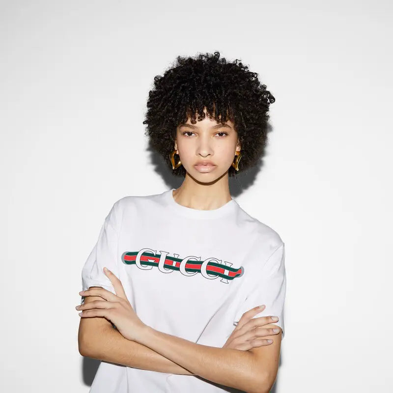 • このアイテムは、夏のスピリットとイタリアのビーチクラブに着想を得た Gucci Lido(グッチ リド)コレクションのひとつです。グッチを象徴するコードや洗練されたパターンを、コンテンポラリーに再解釈した最新コレクション。このゆったりとしたTシャツはホワイトのミディアムコットンジャージーで仕立て、GUCCI ウェブ ストライプ プリントでアクセントを効かせています。