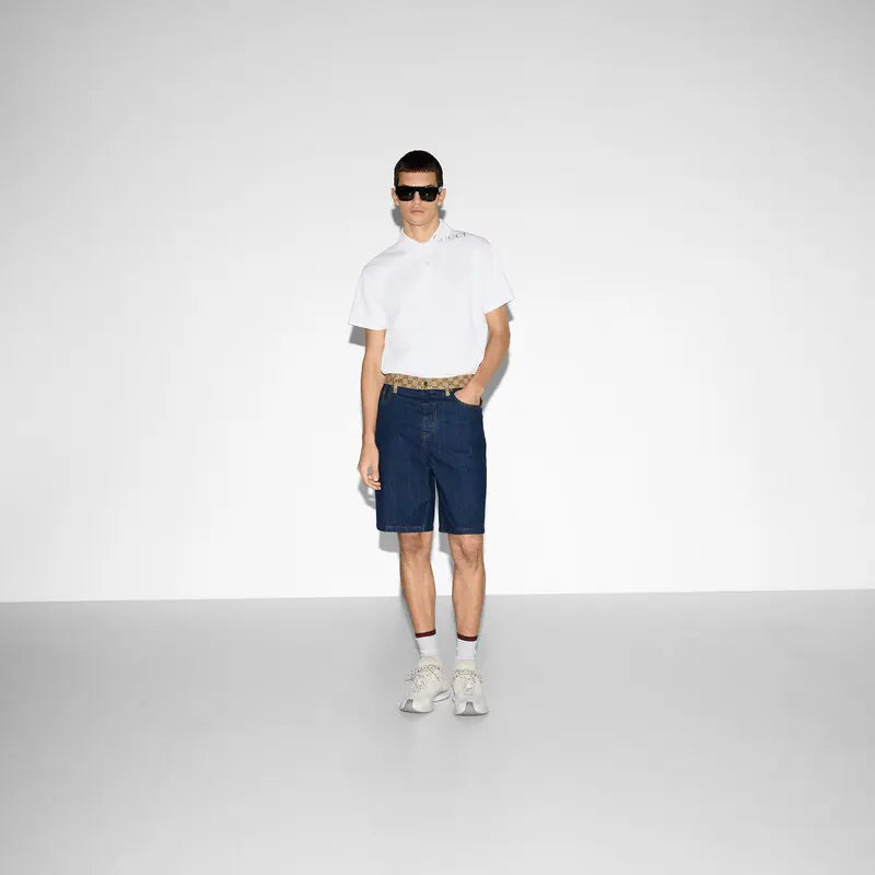 最新コレクションに登場した柔らかなニットウェアやポロシャツといった定番アイテムは、日常の装いを格上げするさりげないディテールが特徴。このポロシャツはストレッチコットンピケで仕立て、GUCCI プリントをあしらいました。
