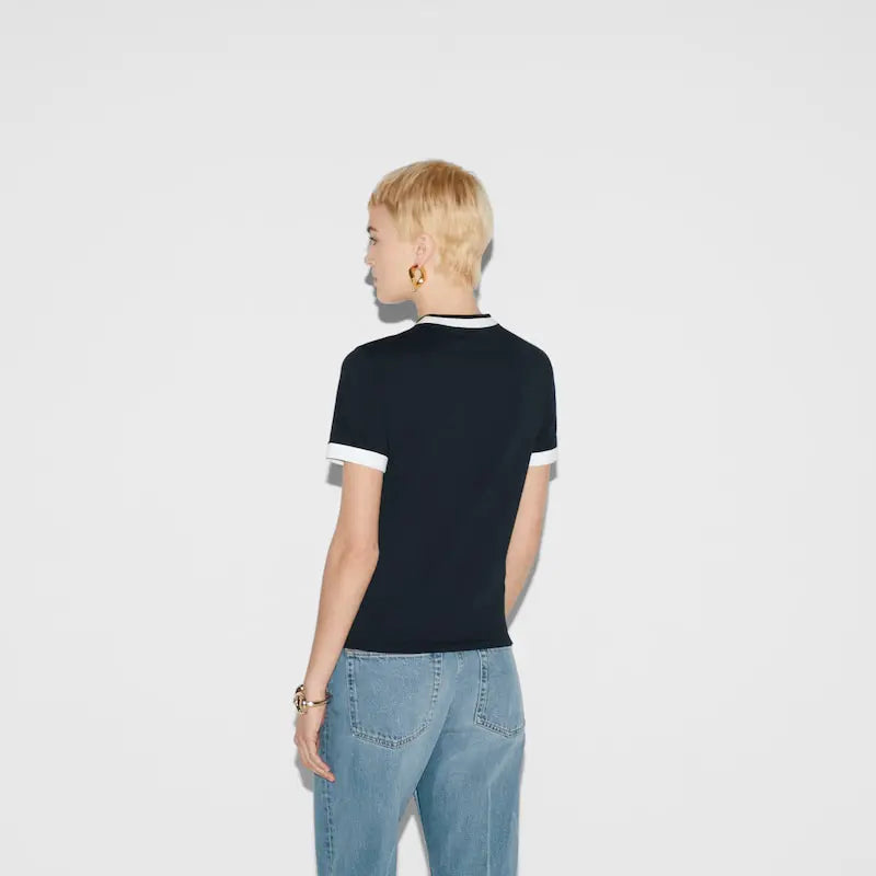 • このアイテムは、夏のスピリットとイタリアのビーチクラブに着想を得た Gucci Lido(グッチ リド)コレクションのひとつです。最新コレクションでは、グッチの解釈によるアクティブウェアをインターロッキングGで演出。そのさりげないモチーフが、洗練された美意識を取り入れたこのネイビーのミディアムコットンジャージー Tシャツを彩ります。