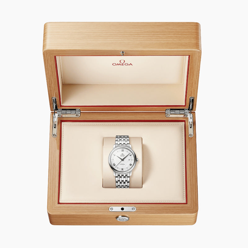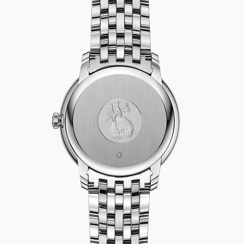 39.5mmのケースはステンレススチール製で、ポリッシュ仕上げのステンレススチール製でエレガントなブレスレットが組み合わされています。この時計には、2500コーアクシャルムーブメントが搭載されています。