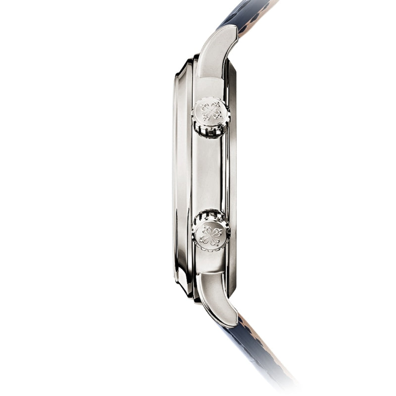 • ストラップ:スクエアスケールのアリゲーターレザー、手縫い、明るいネイビーブルー。折りたたみ留め金。