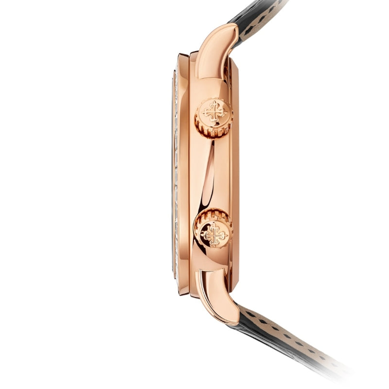 - ケース:ローズゴールドスタイル。ケース直径:44mm。厚さ: 11.33 mm。防水レベル:30メートル。サファイアクリスタルのケースバック。