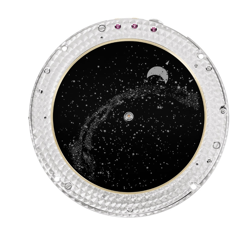 - ダイヤル: 星図と天の川を表示する透明なサファイアクリスタルディスク。