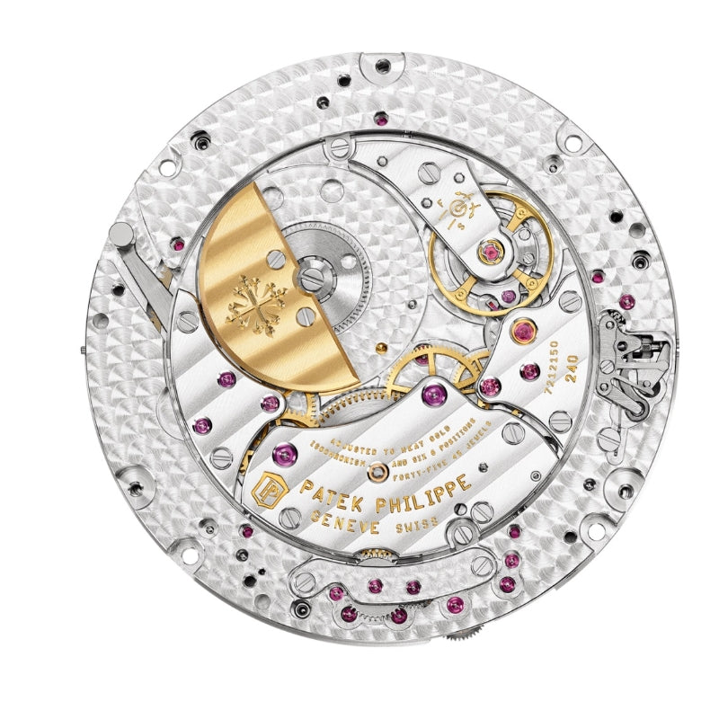 - スターリースカイシリーズの時計の文字盤は天体の素晴らしい動きを鮮やかに再現し、パテック フィリップの天文時計の偉大な伝統を存分に表現しています。所有者はいつでも北半球の星空を鑑賞し、星や月の満ち欠けの変化、月の軌道をはっきりと認識することができます。時間と分を指し示す 2 本のスケルトン針は平均太陽時を表します。サファイアクリスタルの内側表面の楕円は、ジュネーブや同緯度の他の場所から見える空を表しています。