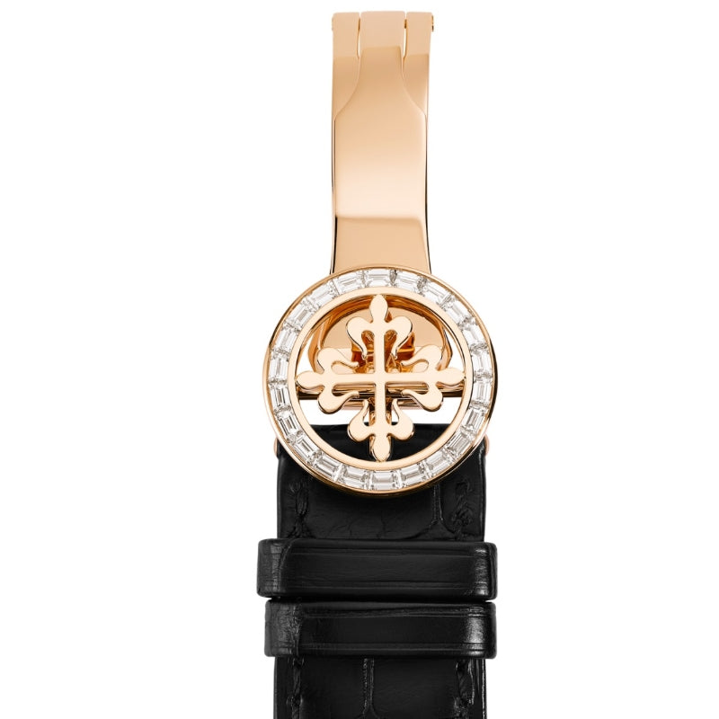 - ストラップ:ストラップ:長方形のスケールが付いたアリゲーターレザー、手縫い、光沢のあるブラック。折りたたみ留め金。