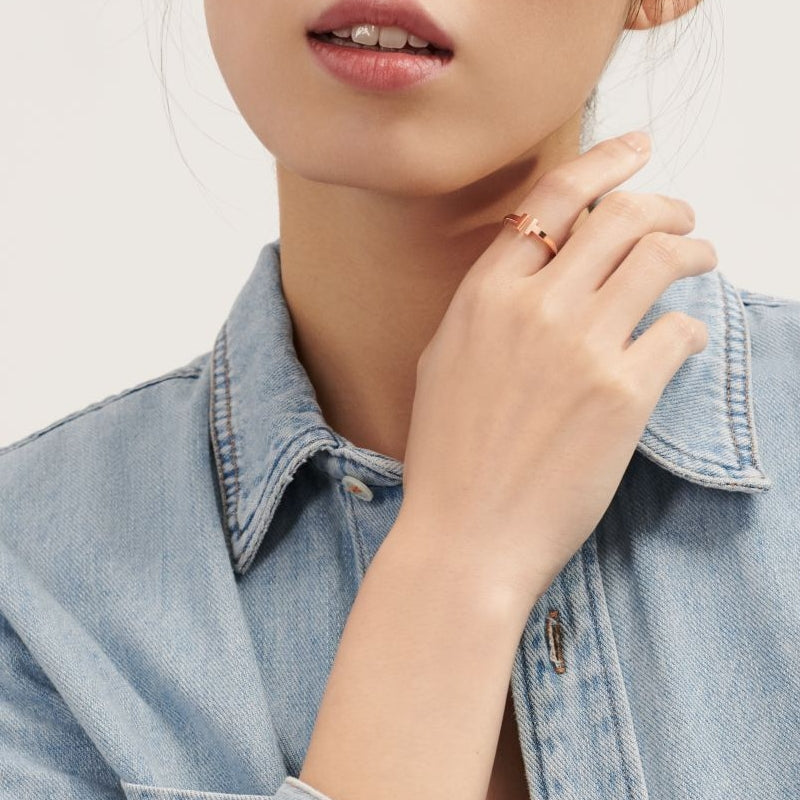 愛がもつ無限の可能性を表現するティファニー T コレクション。1975年製作のアーカイブ ブレスレットに着想を得たティファニー Tは、ティファニーを象徴するモチーフと、創設者であるチャールズ・ルイス・ティファニーが希望と可能性の地であると考えたニューヨークの精神にオマージュを捧げています。バラエティ豊かなティファニーのリングと組み合わせた存在感を放つルックや、シンプルに単独でお楽しみいただけるデザインです。