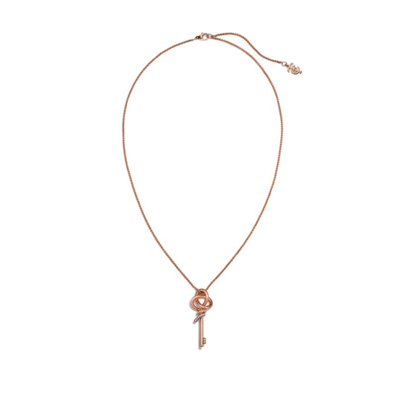 • ティファニー ノットは揺るぎない愛の絆を表現しています。1889年に製作されたアーカイブのリボンに着想を得たティファニー ノットは、人生において永遠に紡がれる絆の象徴であり、一人ひとりの大切なつながりを体現しています。艶やかな18K ローズゴールドで作り上げられたペンダントは、手作業でひときわ美しい光沢に磨き上げられています。ティファニーの厳格な基準を満たすために厳選された一つひとつのラウンド ブリリアント ダイヤモンドは、輝きを最大限に引き出すために手作業で精巧な角度にセッティングされています。一つで身に着けることも、クラシックなシェイプのペンダントとの独創性にあふれた組み合わせを楽しむこともできるデザインです。