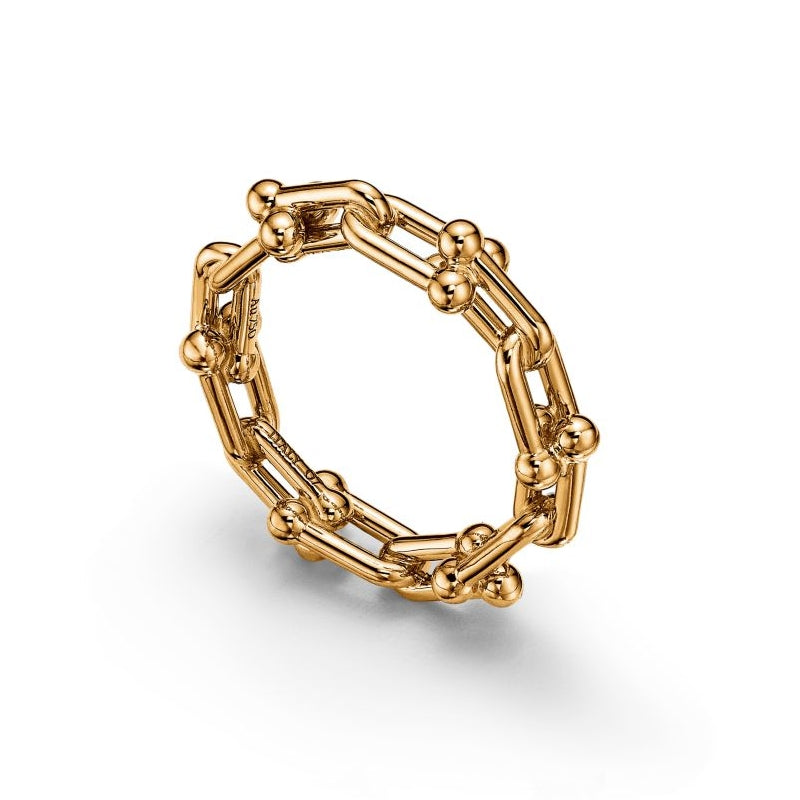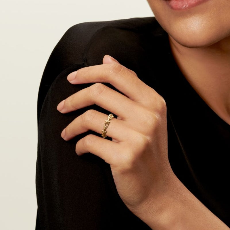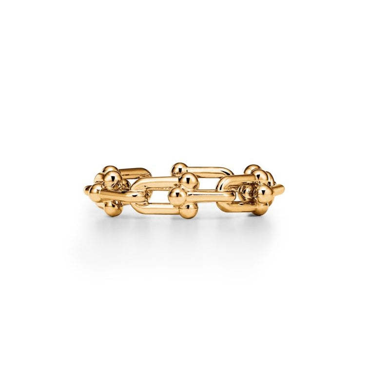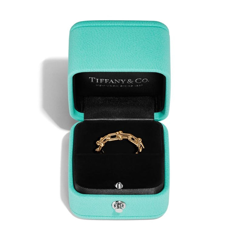 • 変わり続ける愛の力を表現するティファニー ハードウェア。ティファニーのアーカイブにある1962年製の象徴的なブレスレットに着想を得たティファニー ハードウェアは、不朽のエネルギーと自由奔放な精神を体現しています。18K イエローゴールドで作り上げられた、コレクションならではのゲージ リンクが目を引くリングです。一つで身に着けることも、他のメタルと組み合わせることもできる魅力的なデザインです。