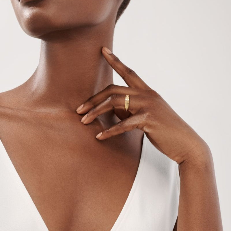 ティファニー T コレクションは愛の無限の可能性を象徴しています。 1975年に初めて発表されたクラシックなブレスレットからインスピレーションを得たこのコレクションは、ティファニーの象徴的なモチーフと、創業者のチャールズ・ルイス・ティファニーが希望と可能性の場所だと信じていたニューヨークの精神に敬意を表す「T」字型のデザインが特徴です。さらなる魅力をプラスするには、このリングを他のティファニー T リングと組み合わせてください。