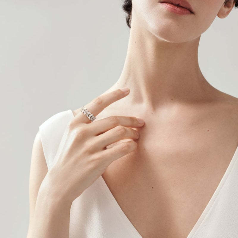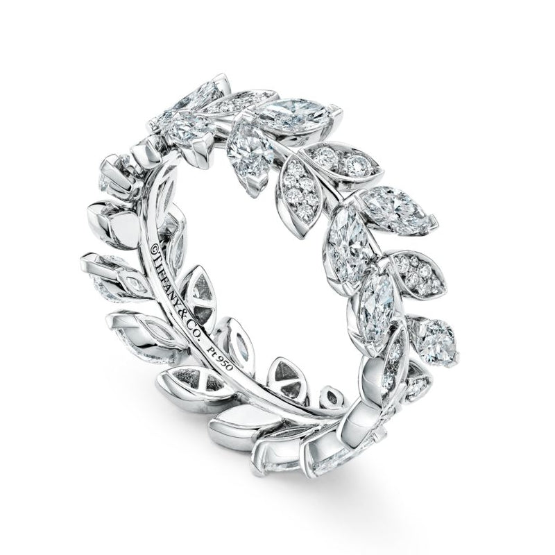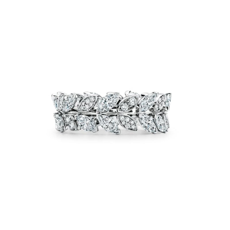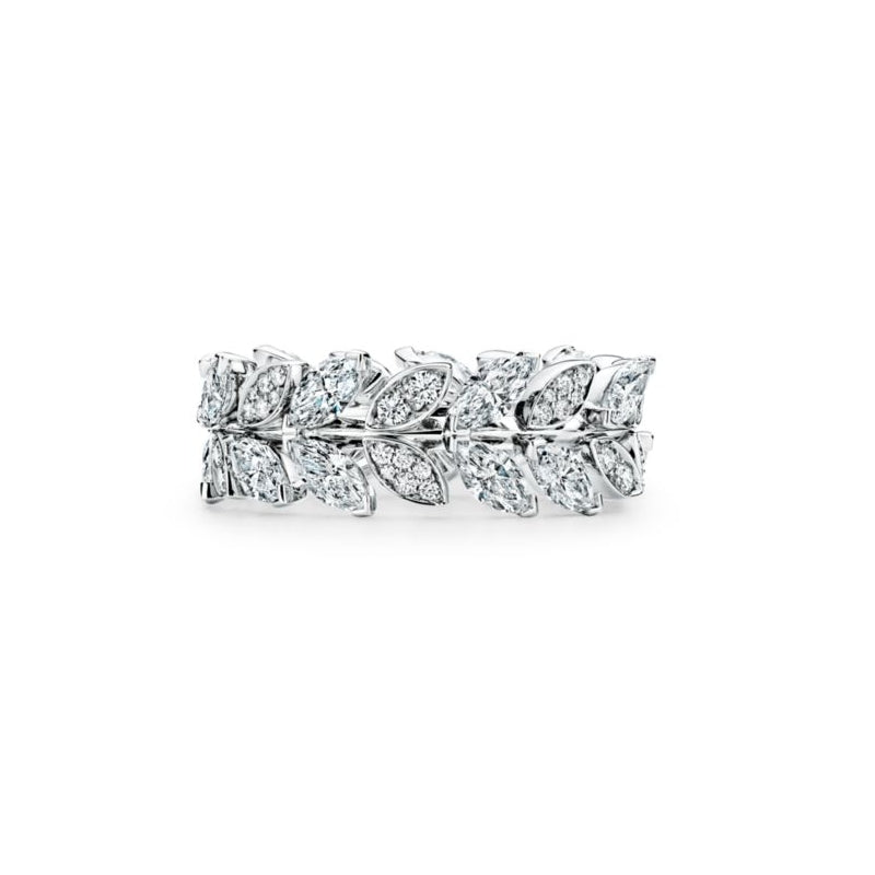 まるで夜空にきらめく星のように、ひときわ美しい輝きを放つティファニー ビクトリア™のダイヤモンド。ラップ リングの有機的なつるのモチーフが、ミックス カット ダイヤモンドの美を引き立てます。