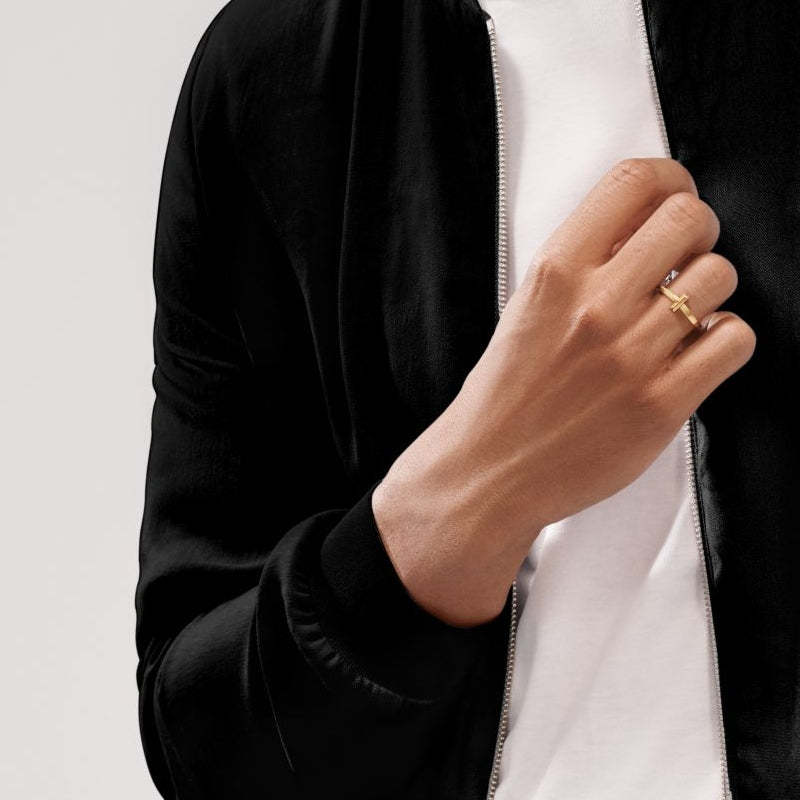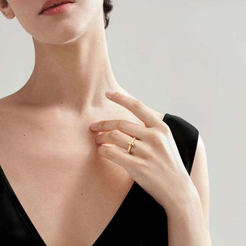 愛がもつ無限の可能性を表現するティファニー T コレクション。1975年製作のアーカイブ ブレスレットに着想を得たティファニー Tは、ティファニーを象徴するモチーフと、創設者であるチャールズ・ルイス・ティファニーが希望と可能性の地であると考えたニューヨークの精神にオマージュを捧げています。このティファニー T リングは、単独でも、バラエティ豊富なティファニーのリングと組み合わせても、印象的な輝きを放ちます。
