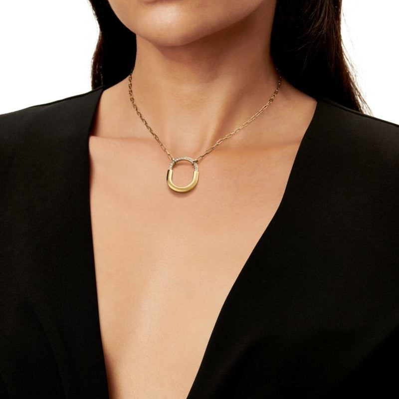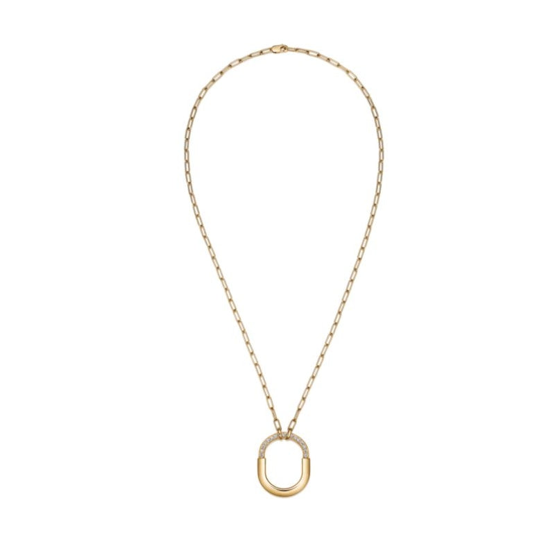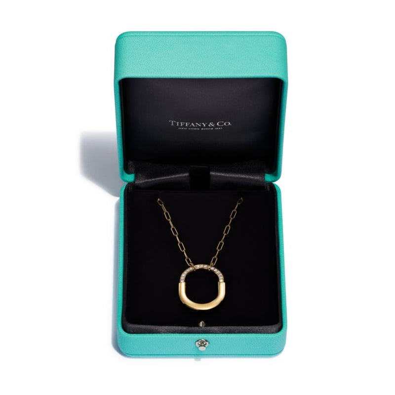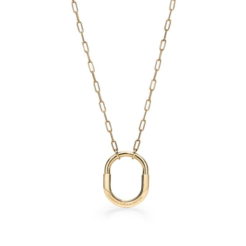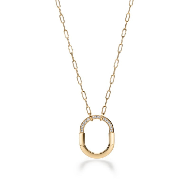 不朽の愛の力を表現するティファニー ロック。1883年にまで遡るティファニー アーカイブのパドロックに着想を得ています。いつでも愛を胸に秘めた、大切なものを象徴する普遍的なシンボルとしてデザインされました。このペンダントは、ロック モチーフを想起させる優美なオーバル型のリンク チェーンが魅力を放ちます。光り輝くダイヤモンドが手作業で丁寧にあしらわれ、18K イエローゴールドで精巧に作り上げられたデザインです。