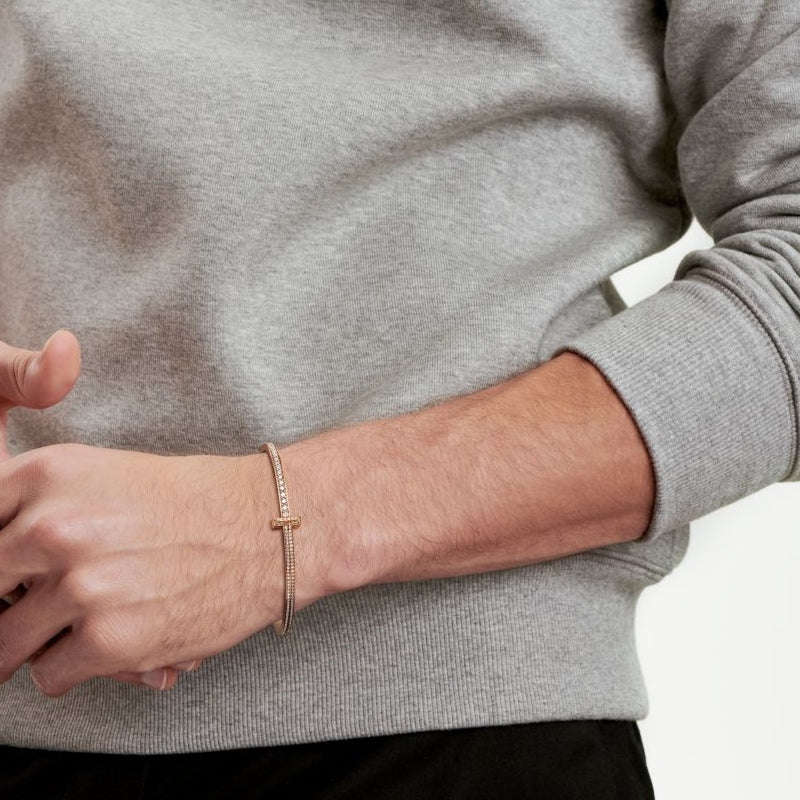 • 愛がもつ無限の可能性を表現するティファニー T コレクション。1975年製作のアーカイブ ブレスレットに着想を得たティファニー Tは、ティファニーを象徴するモチーフと、創設者であるチャールズ・ルイス・ティファニーが希望と可能性の地であると考えたニューヨークの精神にオマージュを捧げています。シンプルに一つで身に着けても、その他のティファニー Tのブレスレットと重ねづけしても、存在感あふれるルックが完成します。