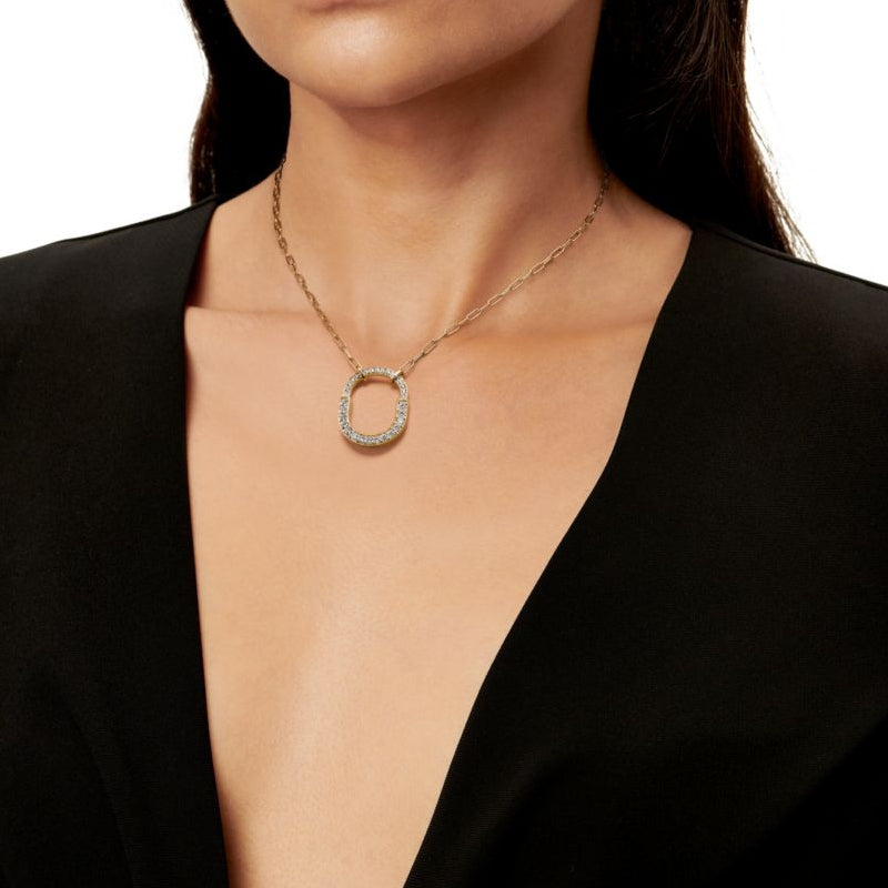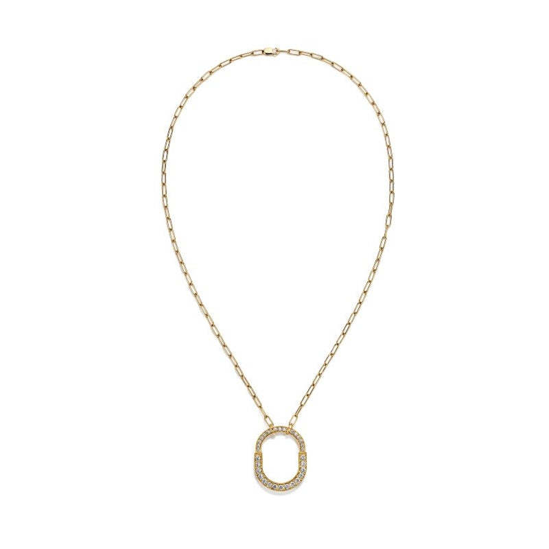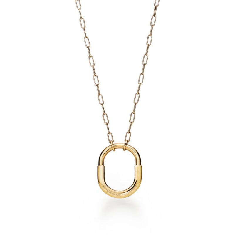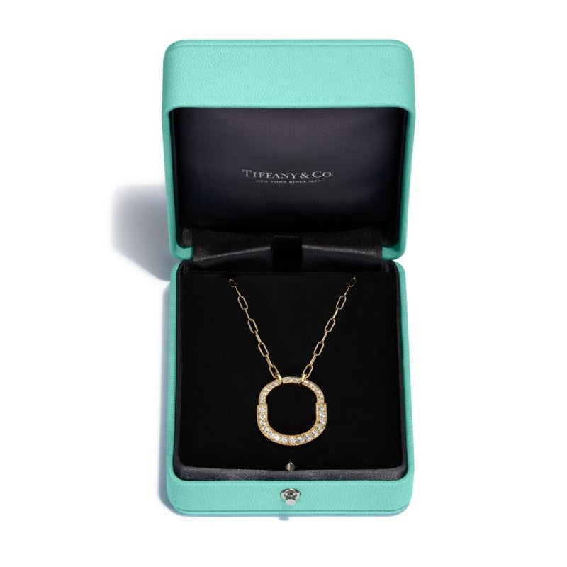 不朽の愛の力を表現するティファニー ロック。1883年にまで遡るティファニー アーカイブのパドロックに着想を得ています。いつでも愛を胸に秘めた、大切なものを象徴する普遍的なシンボルとしてデザインされました。このペンダントは、ロック モチーフを想起させる優美なオーバル型のリンク チェーンが魅力を放ちます。光り輝くダイヤモンドが手作業で丁寧にあしらわれ、18K イエローゴールドで精巧に作り上げられたデザインです。