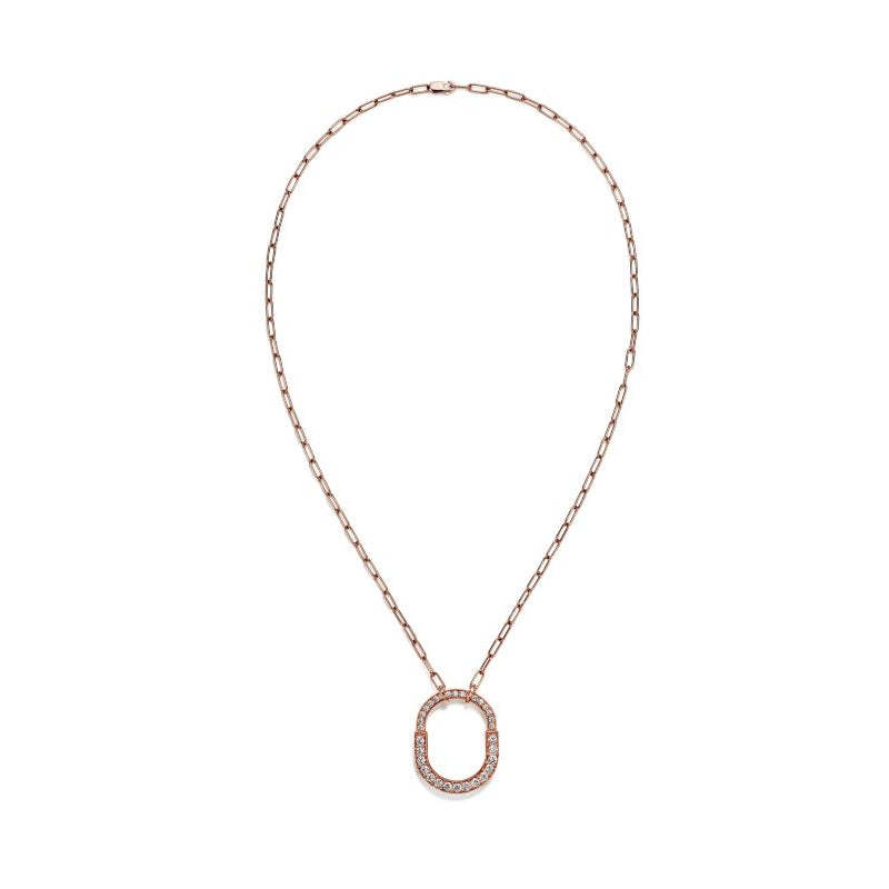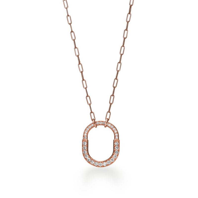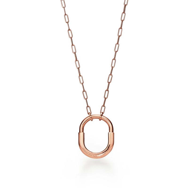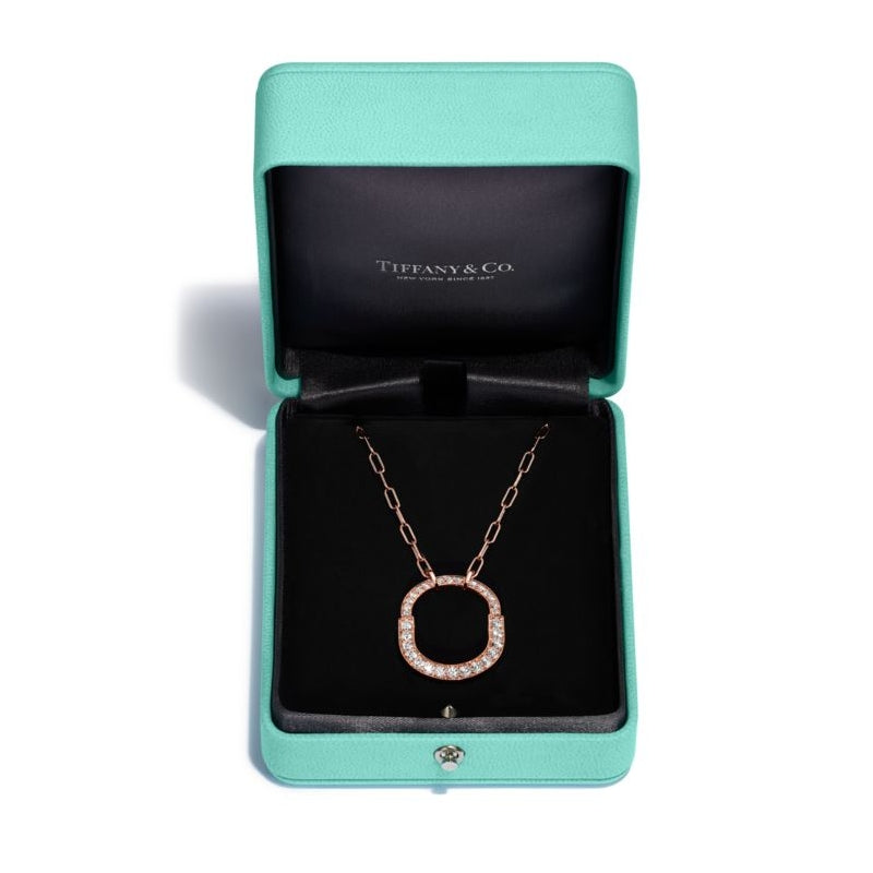 不朽の愛の力を表現するティファニー ロック。1883年にまで遡るティファニー アーカイブのパドロックに着想を得ています。いつでも愛を胸に秘めた、大切なものを象徴する普遍的なシンボルとしてデザインされました。このペンダントは、ロック モチーフを想起させる優美なオーバル型のリンク チェーンが魅力を放ちます。光り輝くダイヤモンドが手作業で丁寧にあしらわれ、18K ローズゴールドで精巧に作り上げられたデザインです。