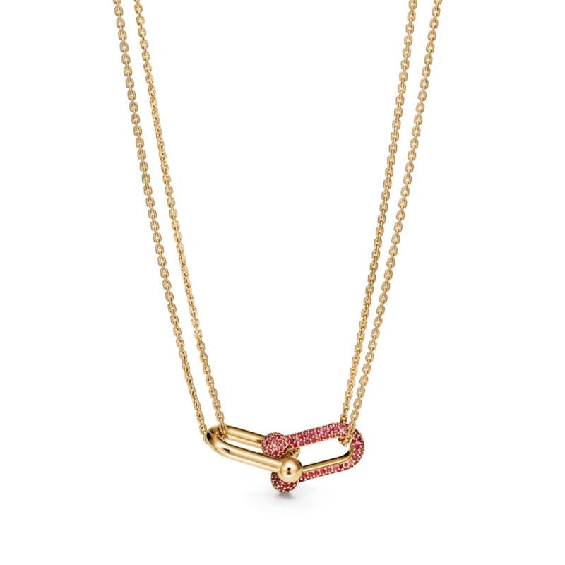 ティファニー ハードウェア コレクションは、愛の変化をもたらす力を象徴しています。 1962 年のティファニーのアンティーク コレクションのクラシックなブレスレットにインスピレーションを得た HardWear コレクションは、永続的な耐久性と気楽な精神を体現しています。このネックレスは、ラインの特徴的なリンク デザインを特徴とし、細かく磨かれた 18K ゴールドとパヴェ ルビーで作られており、爽やかなひねりが効いています。このステートメントピースは、単独で着用することも、他のネックレスと重ねて着用して、魅力的でモダンな外観にすることもできます。