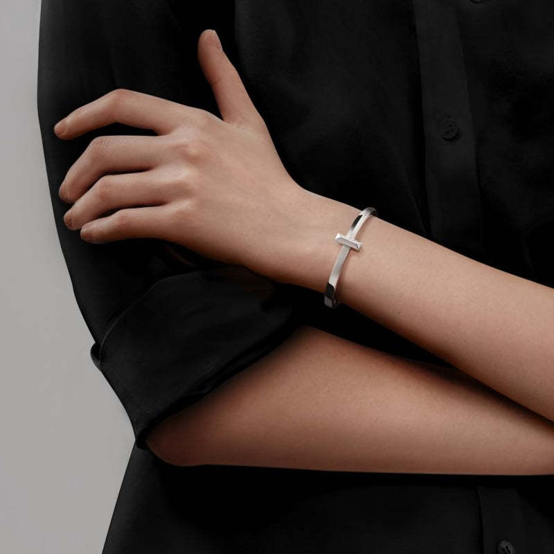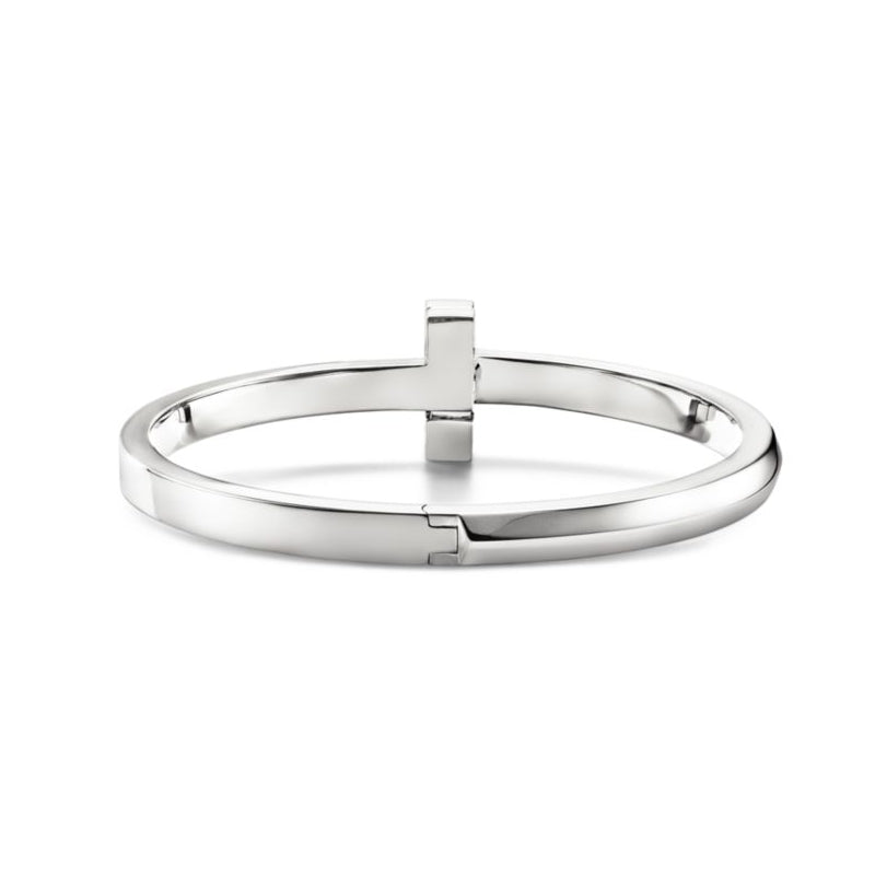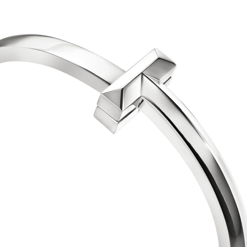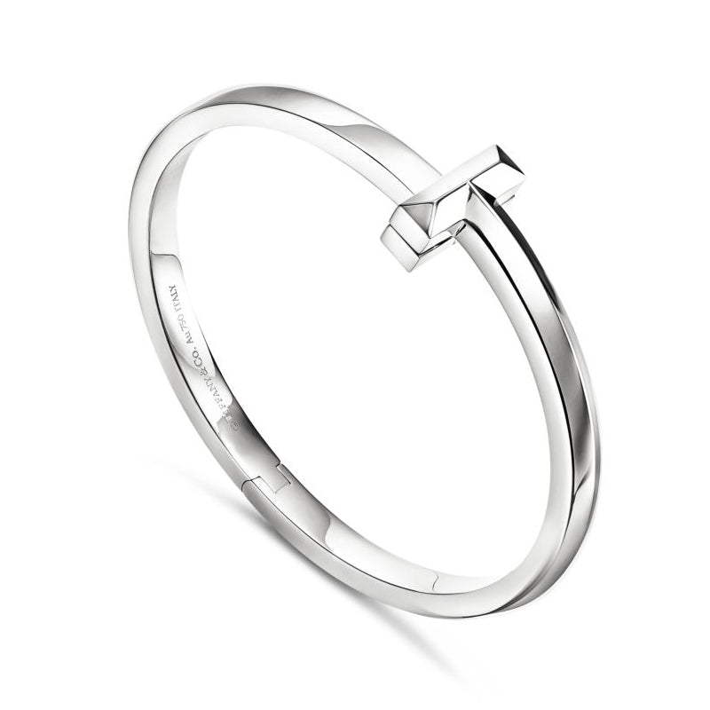 • 愛がもつ無限の可能性を表現するティファニー T コレクション。1975年製作のアーカイブ ブレスレットに着想を得たティファニー Tは、ティファニーを象徴するモチーフと、創設者であるチャールズ・ルイス・ティファニーが希望と可能性の地であると考えたニューヨークの精神にオマージュを捧げています。シンプルに一つで身に着けても、その他のティファニー Tのブレスレットと重ねづけしても、存在感あふれるルックが完成します。